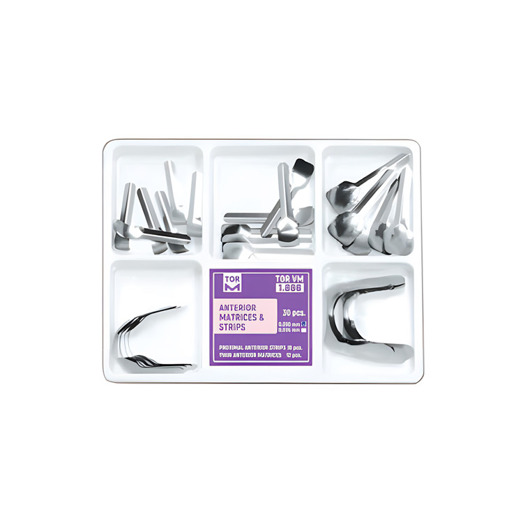ویژگیهای کیت نوار ماتریکس قدامی - Anterier Matrices & Strips: - مدل 1.888 - نوع: قدامی - جهت ترمیمهای مستقیم پوسیدگیهای کلاس III، IV، V - ضخامت نوار ماتریسها: 50 میکرون (0.050mm) - تعداد در بسته: 30 عدد - محتویات بسته: - ماتریسهای قدامی پروگزیمال 6 عدد (کوچک) - ماتریسهای قدامی پروگزیمال 6 عدد (متوسط) - ماتریسهای قدامی پروگزیمال 6 عدد (بزرگ) - ماتریسهای قدامی دوقلو 6 عدد (کوچک) - ماتریسهای قدامی دوقلو 6 عدد (بزرگ)