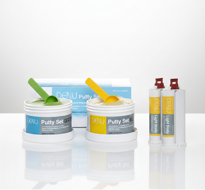 ست قالب گیری آ سیلیکون دنو – Denu A Silicone Set نوع: نرمال ست (Normal Set) حداقل تغییر شکل قالب هنگام برداشتن از دهان قابلیت ارتجاعی سهولت در استفاده آبدوستی فوقالعاده ثبت جزئیات با دقت بالا ورکینگ تایم (Working Time): 2 دقیقه ستینگ تایم (Setting Time): 4 دقیقه قیمت برای 1 عدد کارتریج 50 میلیلیتری میباشد