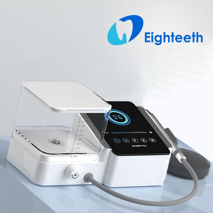 اسکیلر التراسونیک چند منظوره ایتیس مدل UltraMint Pro یکی از جدیدترین محصولات کمپانی معتبر ایتیس می باشد که پس از عرضه بسیار مورد توجه قرار گرفت. این دستگاه بسیار پیشرفته از امکانات کاربردی برخوردار است که در ادامه به شرح آن ها می پردازیم. هندپیس و سرقلم هندپیس این دستگاه از نوع LED می باشد که از قابلیت جداشدن و اتوکلاو برخوردار است. اسکیلر التراسونیک UltraMint Pro به دو نوع قلم Satelec به رنگ آبی و EMS به رنگ نقره این مجهز می باشد که هر کدام دارای 6 سرقلم جداگانه می باشند که دندانپزشک می تواند بسته به نیاز خود آن ها را تعویض کند. عملکرد قلم ها به گونه ای است که آب را به صورت ضربات مکانیکى به سطح دندان وارد میکنند و موجب جدا شدن جرم ها و پلاک ها از روی دندان مى شوند. حدوده فرکانسی اسکیلر التراسونیک چند منظوره ایتیس وسیع بوده و %100 مطابق با تیپ های نوع EMS می باشد. این محدوده بین 25 تا 42 کیلوهرتز قابل تنظیم است. مخزن آب اسکیلر التراسونیک چند منظوره ایتیس دارای یک مخزن با گنجایش 900 میلی لیتر می باشد که به صورت شفاف و مدرج می باشد. بهتر است مخزن دستگاه هنگام استفاده توسط آب مقطر استریل پر شود. همچنین می تواندبرای سدیم هیپوکلریدوو, کلروهگزدین, هیدروژن پراکساید و سالین نیز قابل استفاده باشد. مد های کاری اسکیلر التراسونیک چند منظوره ایتیس Eighteeth مدل UltraMint Pro دارای 3 مد کاری می باشد که عبارتند از مد جرمگیری جهت حذف پلاکت ها و جرم های موجود روی دندان ، مد پریو قابل استفاده در جراحی های پریو یا همان جرمگیری های لثه و مد اندو که در عصب کشی ها ، شستشوی کانال دندان ، خارج کردن فایل شکسته و … مورد استفاده قرار می گیرد. نحوه عملکرد این محصول به یک پدال پایی مجهز است که سوئیچ آن کمتر از 2 سانتی متر ارتفاع دارد. دندانپزشک با فشردن پدال هندپیس دستگاه را فعال کرده و آب را از طریق شیلنگ متصل به پدال به سمت نوک هندپیس هدایت می کند. در نهایت لایه ی اضافی جرم که بر روی دندان ها ایجاد شده را از بین میبرد. این دستگاه از تکنولوژی پیشرفته برخوردار است و از خونریزی در حین کار نیز جلوگیری می کند. سر قلم های باریک و کوچک علاوه بر اینکه موجب تمیز شدن کامل سوراخ ها و شیارهای کوچک می شود ، فشار خیلی کمی را در حین جرمگیری بر دندان های بیمار وارد میکند.