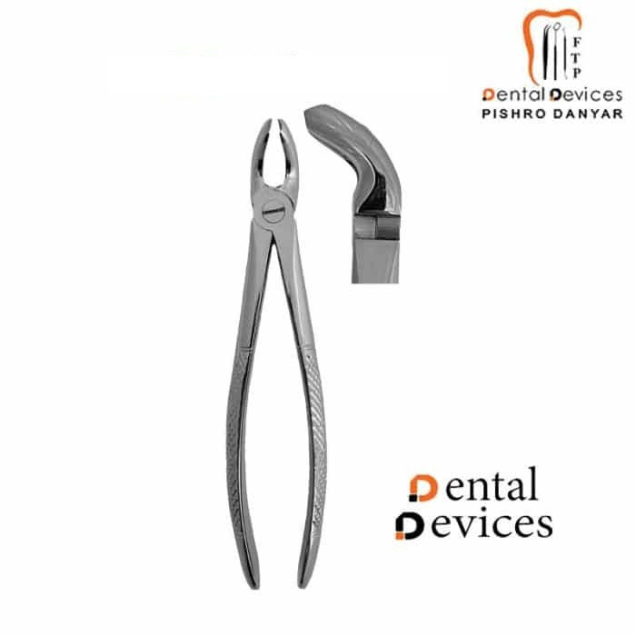 کارایی : این فورسپس جهت کشیدن دندان های مولر پایین میباشد. نقاط قوت : ظرافت خاص در ساخت قسمت فوقانی – دندانه دار بودن قسمت پایین فورسپس طول فورسپس: 18سانتی متر طول کاربردی فورسپس: 3 سانتی متر