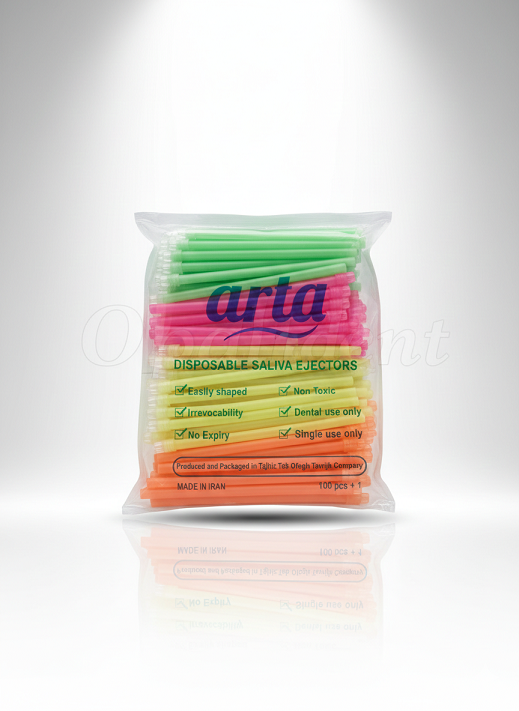 سرساکشن ارتا دارای تعداد 100 عدد در هر بسته میباشد انعطاف پذیری بالا ، ساخته شده از بهترین مواد اولیه ، دارای حفره های استاندارد جهت جلوگیری از مکش لثه بیمار ، رنگ شفاف ، بدون بو ، دارای نشان سلامت سیب