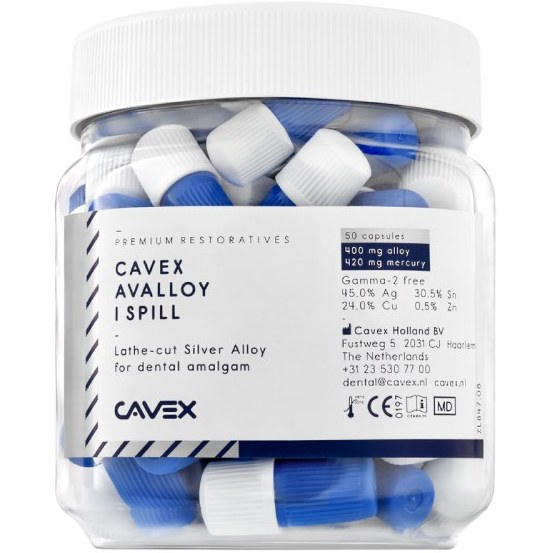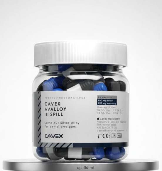 مشخصات و ترکیبات امالکپ Cavex این آمالکپ ترکیبی از آلیاژهای باکیفیت و جیوه است. فرمولاسیون ویژه آن بدون فاز مضر گاما 2 ساخته میشود که ایمنی و دوام ترمیم را تضمین میکند. نقره (Ag): 45% مس (Cu): 30.5% قلع (Sn): 24% روی (Zn): 0.5%