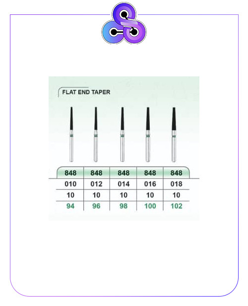 کاربرد:فرز الماسه دندانپزشکی مدل تیپر 848 Flat End Cylinder با مدل بدنه مخروطی با انتهای صاف می باشد که کاربرد آن برای ایجاد دیوارههای هایی با زاويه مناسب برای جهت گیری بهار روکش می باشد این مدل زمانی مورد استفاده قرار میگیرد که بخواهید روکش فلزی یا سرامیکی دقیقا روی سطح قرار بگیرد.این مدل باعث میشود زاويه ها و سطح پایانی دیواره ها واضح و صاف باشد..
